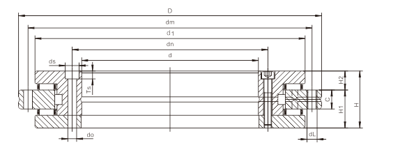 d | D | H | H1 | H2 | C | d1 | dn | dm | 內圈 | 外圈 | 動 | 靜 | 動 | 靜 | |||||||||||||